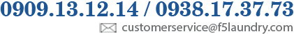 With criteria "Wash separately, fragrant dried, pick up & deliver to your place" F5 Laundry is not only gives you the feeling of absolute comfort when wearing clothes smelling clean, but also clearly bring mentally sharp as a green environment, clean in each of our activities!